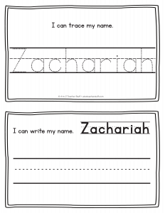 Zachariah – Name Printables for Handwriting Practice