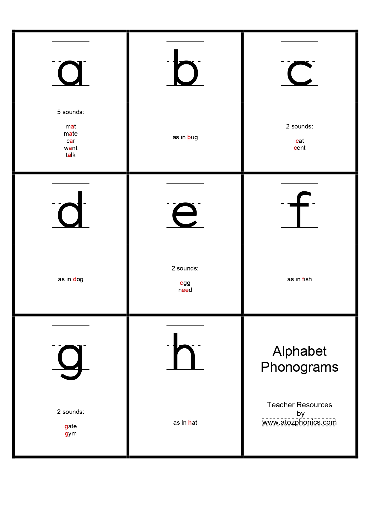 Notes for using the alphabet phonograms printable: