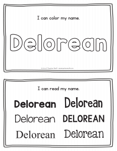 Delorean – Name Printables for Handwriting Practice