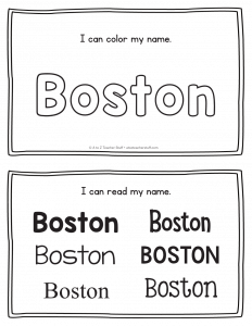 Boston – Name Printables for Handwriting Practice