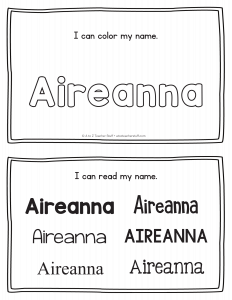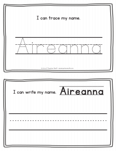 Aireanna – Name Printables for Handwriting Practice