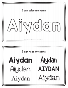 Aiydan – Name Printables for Handwriting Practice
