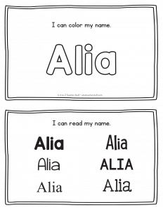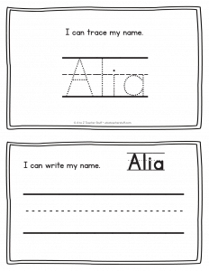 Alia – Name Printables for Handwriting Practice
