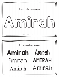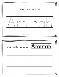 Amirah – Name Printables for Handwriting Practice