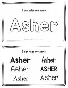 Asher – Name Printables for Handwriting Practice