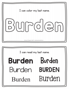 Burden – Name Printables for Handwriting Practice