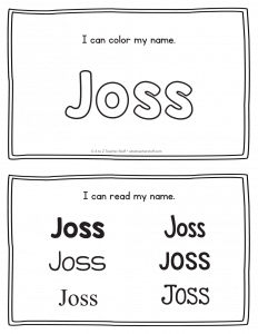 Joss – Name Printables for Handwriting Practice