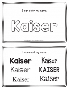 Kaiser – Name Printables for Handwriting Practice