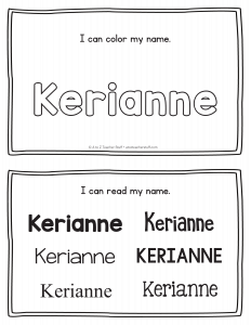 Kerianne – Name Printables for Handwriting Practice