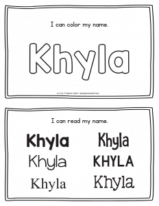 Khyla – Name Printables for Handwriting Practice