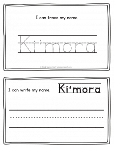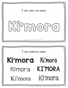 Ki’mora – Name Printables for Handwriting Practice
