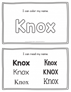 Knox – Name Printables for Handwriting Practice