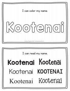 Kootenai – Name Printables for Handwriting Practice