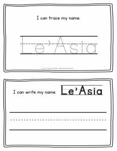 Le’Asia – Name Printables for Handwriting Practice