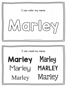Marley – Name Printables for Handwriting Practice