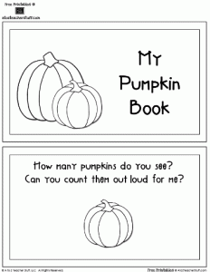 This book starts with, “How many pumpkins do you see? Can you count them out loud for me?”  The following pages have pictures of pumpkins for the child to count.