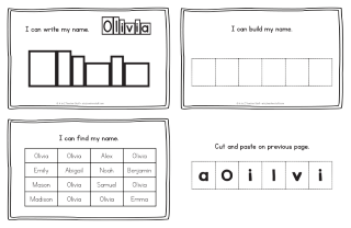Start with our printable ready-made name book with several pages for practicing name recognition and handwriting. Choose pages that work best for you or use them all. To assemble these books, print the page(s) you need and cut pages in half. Staple together and you’re all set!