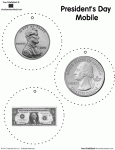 Printable pages for creating a mobile featuring presidents Abraham Lincoln and George Washington. Great for Presidents’ Day or studies involving the presidents.