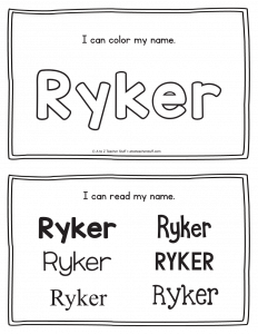 Ryker – Name Printables for Handwriting Practice
