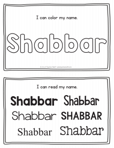 Shabbar – Name Printables for Handwriting Practice
