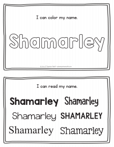 Shamarley – Name Printables for Handwriting Practice
