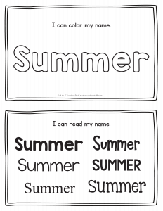Summer – Name Printables for Handwriting Practice