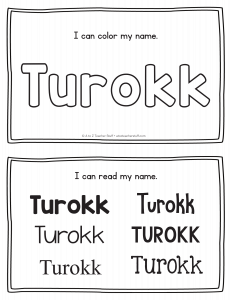 Turokk – Name Printables for Handwriting Practice