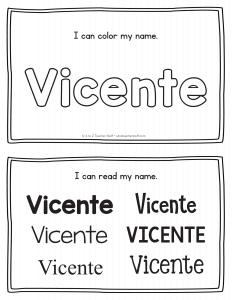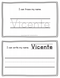 Vicente – Name Printables for Handwriting Practice