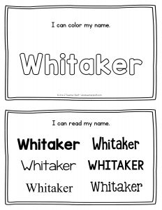 Whitaker – Name Printables for Handwriting Practice