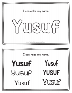 Yusuf – Name Printables for Handwriting Practice