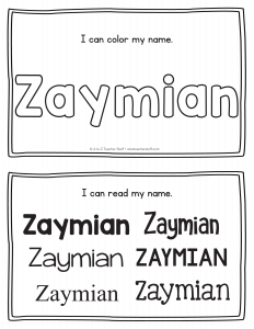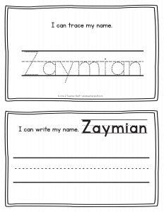 Zaymian – Name Printables for Handwriting Practice