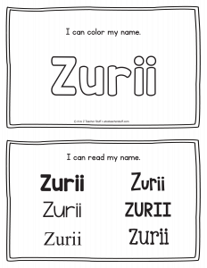 Zurii – Name Printables for Handwriting Practice